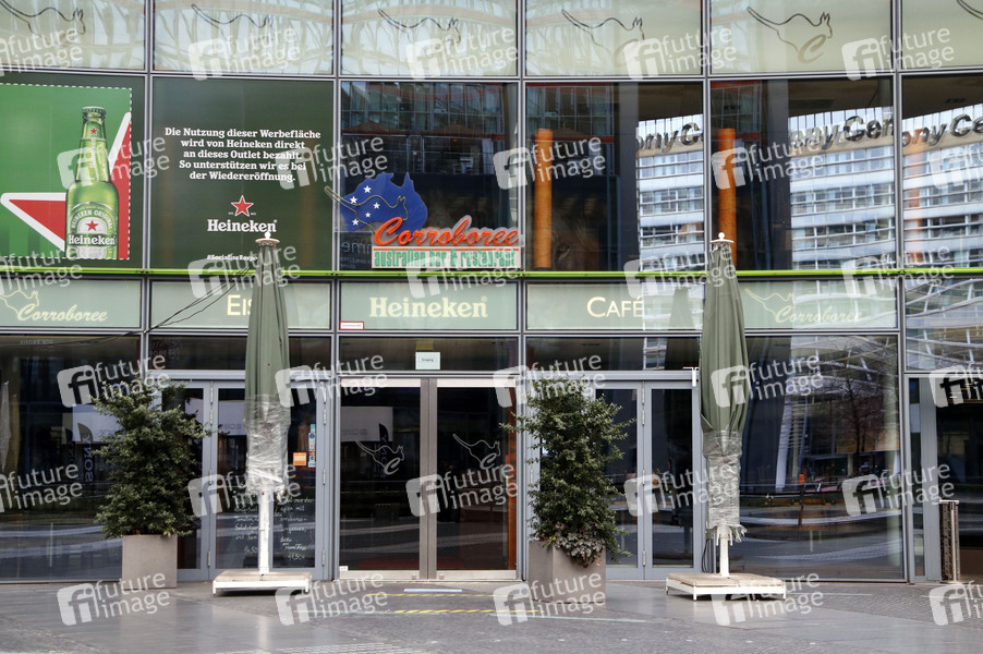 Leere, Stillstand, Insolvenz, Lokal, Lokale, Restaurant, Restaurants, Gastro, Gastronomie, Isolation, Ruin, Schließung, Einsamkeit, Pandemie, Gewinneinbruch, geschlossene Filialen, Corona, Virus, Infektionsgefahr, Corona-Regeln, Arbeitslosigkeit, Kurzarbeit, fehlende Mieten, Mieteinnahmen, Coronakrise, Lockdown, verschärfter Lockdown, Corona-Notbremse, Potsdamer Platz, Symbolbild, Symbolfoto