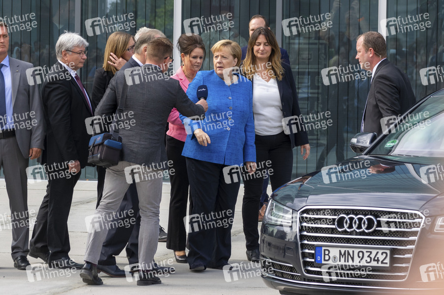 Reiner Haseloff, Claudia Perren und Angela Merkel vor dem neuen Bauhaus Museum. Dessau-Roßlau, 08.09.2019