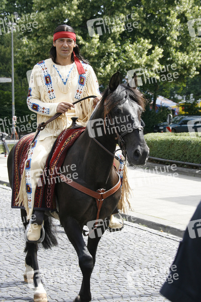 Das Ensemble der Karl-May-Spiele 2009 nimmt Ministerpräsident Wulff in den Kreis der Ehrenhäuptlinge auf. Dazu fanden sich die Mitwirkenden von 'Der Schatz im Silbersee' in der Niedersächsischen Staatskanzlei in Hannover ein.