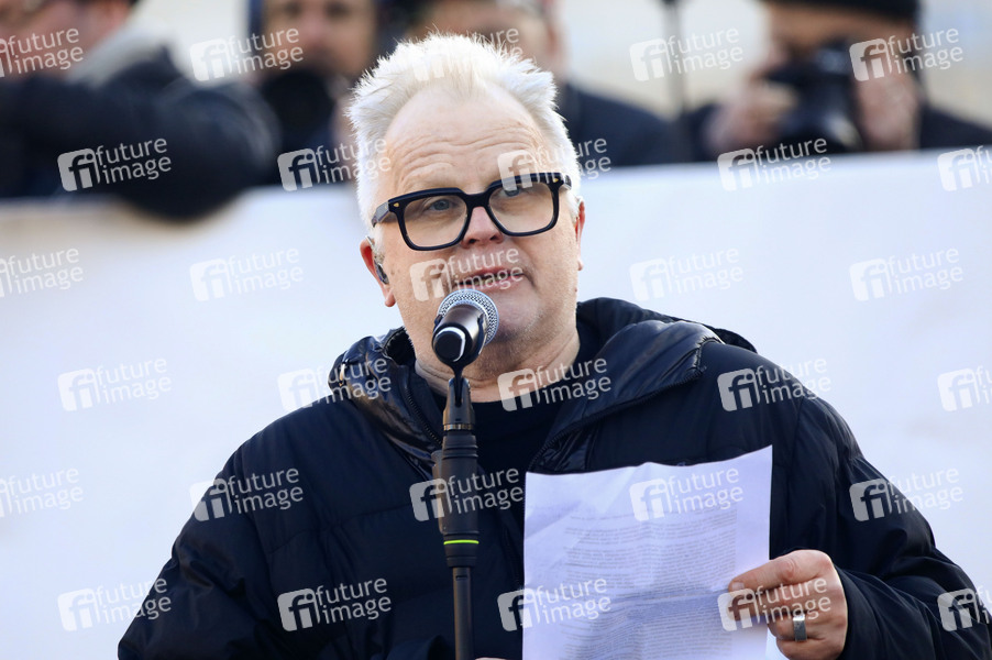 Herbert Grönemeyer bei der Kundgebung unter dem Motto 'Mutig. Menschlich. Miteinander. - Hand in Hand für unsere Demokratie' auf dem Bebelplatz. Berlin, 16.02.2025