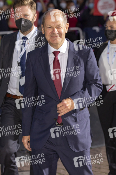 Olaf Scholz beim 'Triell - Dreikampf ums Kanzleramt' von ARD und ZDF mit den Kanzlerkandidaten im Studio Berlin-Adlershof. Berlin, 12.09.2021