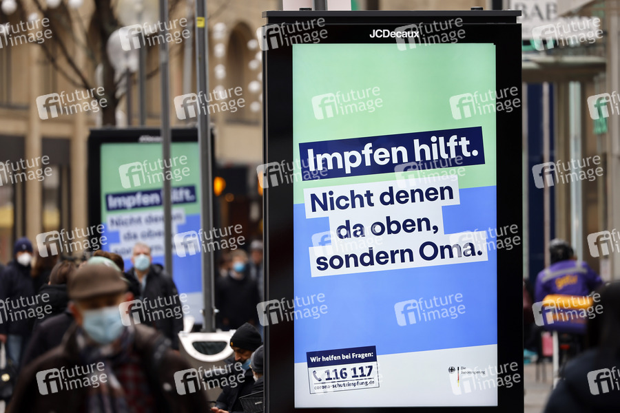 Die Impfkampagne des Bundes unter dem Motto 'Impfen hilft' erzielte nicht den gewünschten Effekt: Während der banal anmutenden Werbeaktion, für die die Ampel 60 Millionen Euro Steuergelder investierte, sank die Zahl der Erstimpfungen auf neue Tiefststände. (Themenbild, Symbolbild) Köln, 10.02.2022