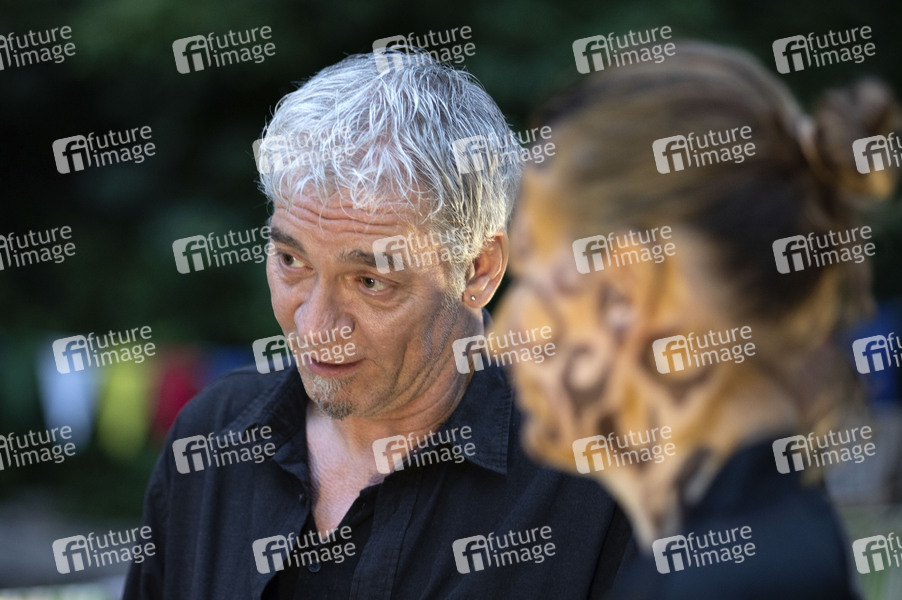 Jörg Düsterwald mit Model Katey bei einer Bodypainting-Performance bei der 'Nacht der Erlebnisse' im Erlebnis-Zoo Hannover. Hannover, 10.06.2022