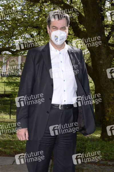 Markus Söder bei der Pressekonferenz zur Absage vom Oktoberfest 2021 und zur diesjährigen Volksfest-Saison in Bayern im Foyer des Prinz-Carl-Palais. München, 03.05.2021