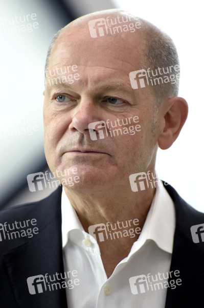 Olaf Scholz bei einem Statement nach einem Unternehmensbesuch bei der Merk KGaA im Innovation Center. Darmstadt, 26.08.2021