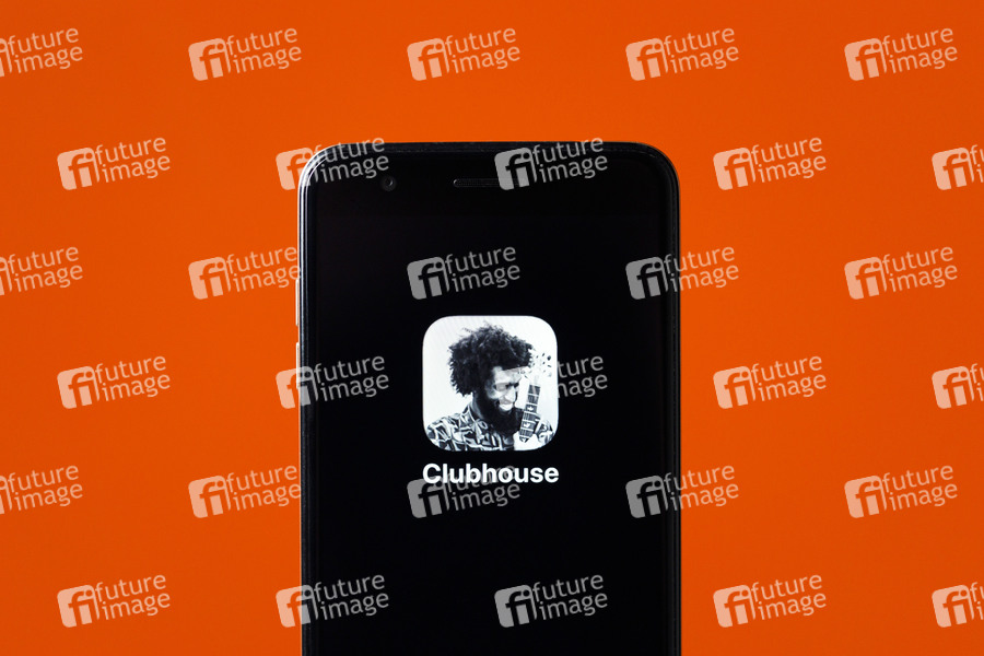 Soziales Netzwerk, Audio App, Clubhouse-Logo, Audio-Anwendung, App Store, Hype, App, Application, Datenschutz, User Data, Big Data, drop in audio chat, Invite Only, Social Media, Einladung, Network, Anwendung, Nutzer, Podcast, Chat, iPhone, Community, Talk, Medienbubble, Media Bubble, Audioinhalte, Kommunikationstool, Mediennutzung, Telefonieren, Unterhaltung, Nutzerdaten, Audiospur, Live-Podcast, exklusiv, Exklusivität, Entwickler Alpha Exploration Co., Social-Network-App, Smartphone, Datensammler, Daten, Clubhouse-Account, Clubhouse-App, Symbolbild, Symbolfoto