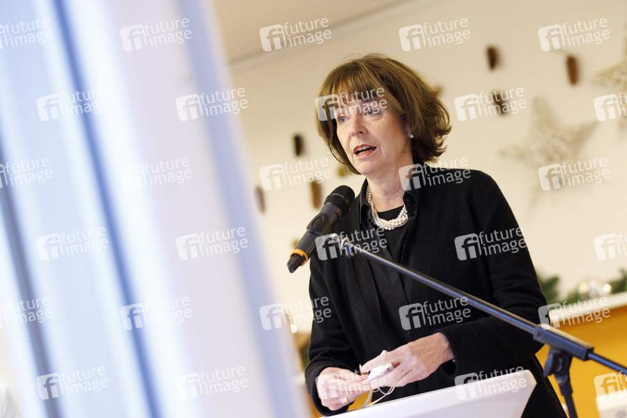 Henriette Reker beim Fototermin zum Impfbeginn in Köln. Zum Impfstart in Köln werden Senioren und Mitarbeiter der Kölner Sozialbetriebe mit dem Corona-Impfstoff von Biontech Pfizer geimpft. Als erste Kölnerin erhielt die 92-jährige Gertrud Vogel, eine Pflegeheimbewohnerin des Seniorenzentrum Riehl das Vakzin. Köln, 27.12.2020