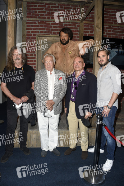 Matthias Wendlandt, Rainer Brandt, Giuseppe Pedersoli und Felix Wendlandt beim Pre-Opening vom Bud Spencer-Museum im Palazzo Italia - Römischer Hof. Berlin, 25.06.2021