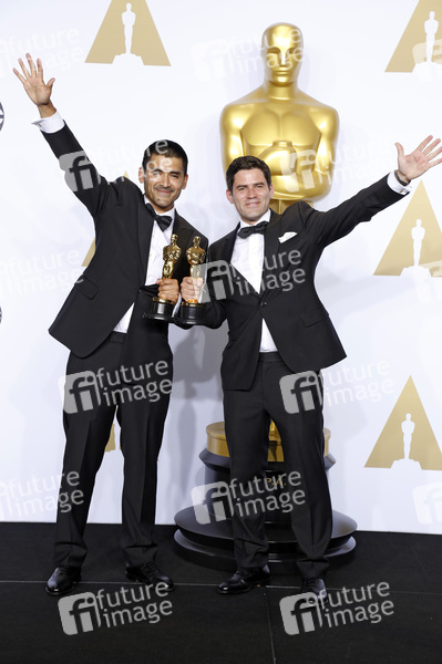 Gabriel Osorio Vargas und Pato Escala (Bester animierter Kurzfilm 'Bear Story') im Presseraum der Oscar Verleihung 2016 / 88th Academy Awards im Loews Hollywood Hotel. Los Angeles, 28.02.2016