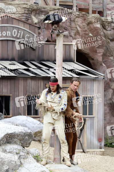 Alexander Klaws und Nicolas König bei einer Aufführung von 'Der Ölprinz' bei den Karl-May-Festspielen 2022 im Freilichttheater am Kalkberg. Bad Segeberg, 06.08.2022