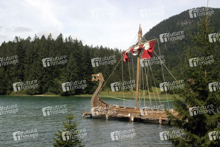 Am Filmset vom Michael 'Bully' Herbig Film 'Wickie und die starken Männer' am Walchensee in Oberbayern zwischen Garmisch und Bad Tölz. Das Wikingerdorf befindet sich in der Sachenbacher Bucht. Das Dorf bleibt nach den Dreharbeiten als Touristenattraktion stehen.