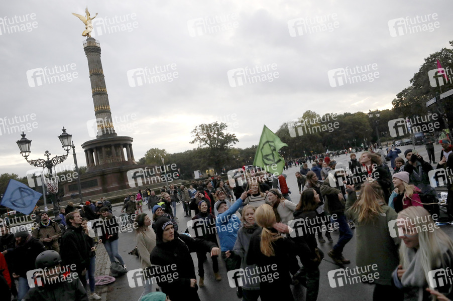 Aktivisten der Klimabewegung 'Extinction Rebellion' blockieren den Großen Stern an der Siegessäule. Berlin, 08.10.2019