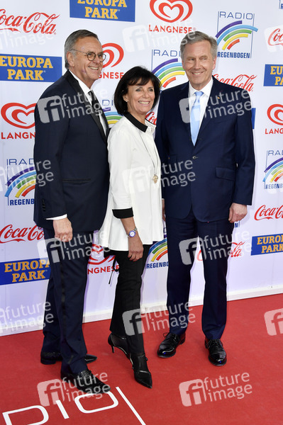 Roland Mack mit Ehefrau Marianne Mack und Christian Wulff bei der Verleihung des 22. Radio Regenbogen Award 2019 in der Europa-Park Arena. Rust, 12.04.2019
