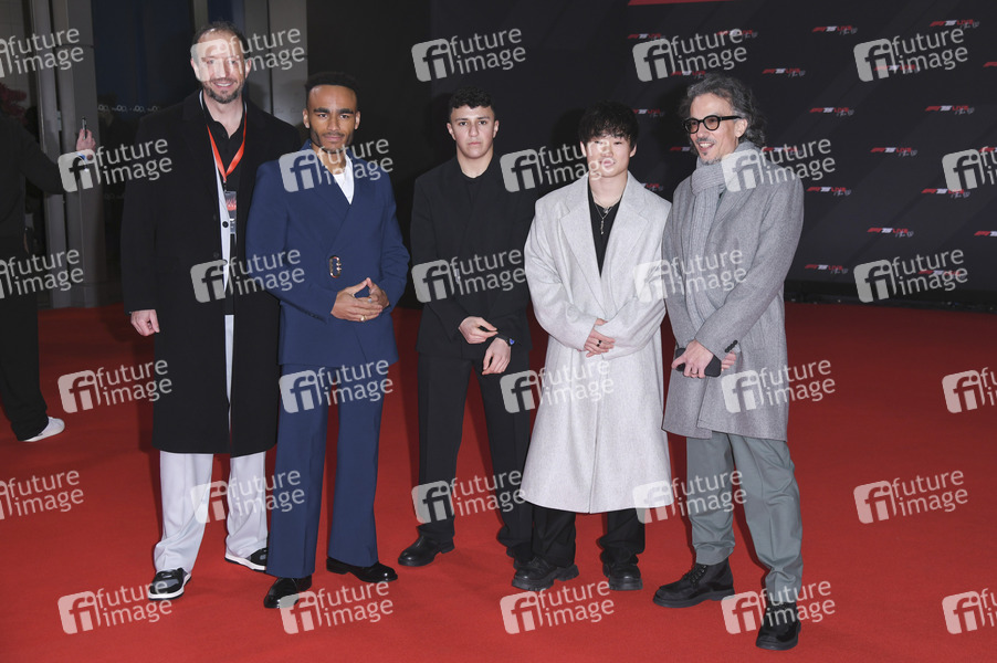 Peter Bayer, Munya Chawawa, Isack Hadjar, Yuki Tsunoda und Laurent Mekies bei der Formel 1 Saison 2025 Eröffnungsfeier 'F1 75 Live' in der O2 Arena. London, 18.02.2025