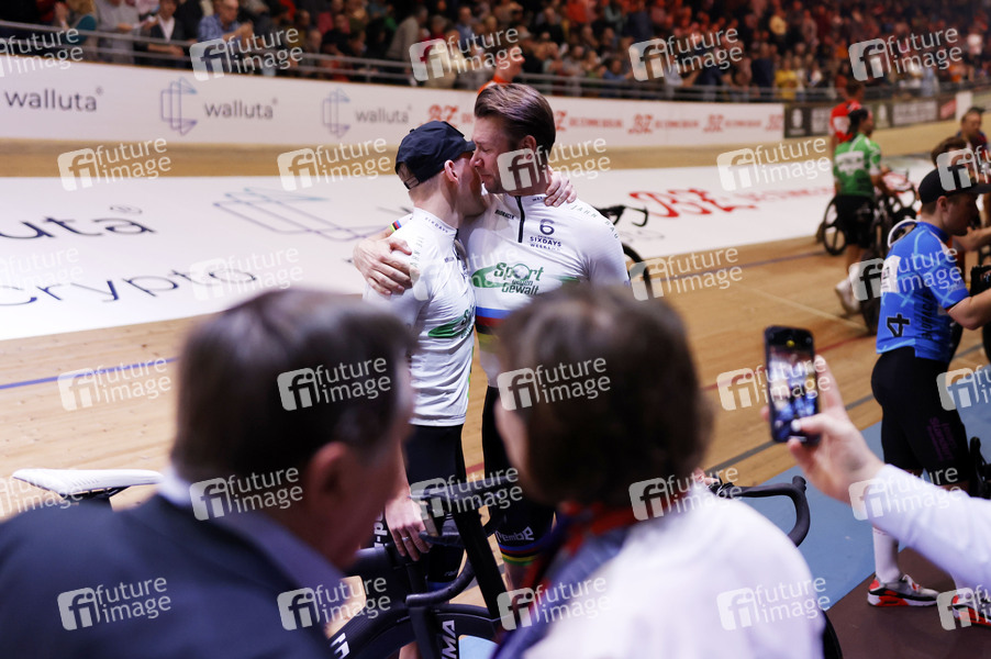 Theo Reinhardt und Roger Kluge beim Sixdays Weekend 2025 im Velodrom. Berlin, 01.02.2025