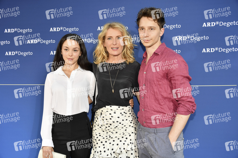 Tijan Marei, Maria Furtwängler und Jonathan Berlin beim ARD Degeto Empfang auf dem 37. Filmfest München 2019 im Kaisergarten. München, 28.06.2019