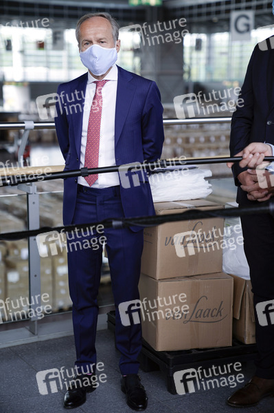 Christian von Daniels (Inhaber van Laack) beim Besuch im Landeslager für Schutzausrüstung an der Messe. Düsseldorf, 03.06.2020