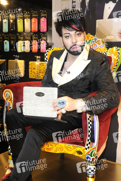IFA 2012, Berlin - Harald Glööckler präsentiert am Stand von Peter Jäckel von ihm gestaltete Netbook- und Smartphone-Cases