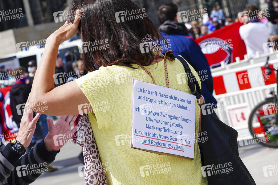 Demonstrationen des Bündnis Köln gegen Rechts und Gegner der Corona Corona Massnahmen auf dem Roncalliplatz. Köln, 16.05.2020