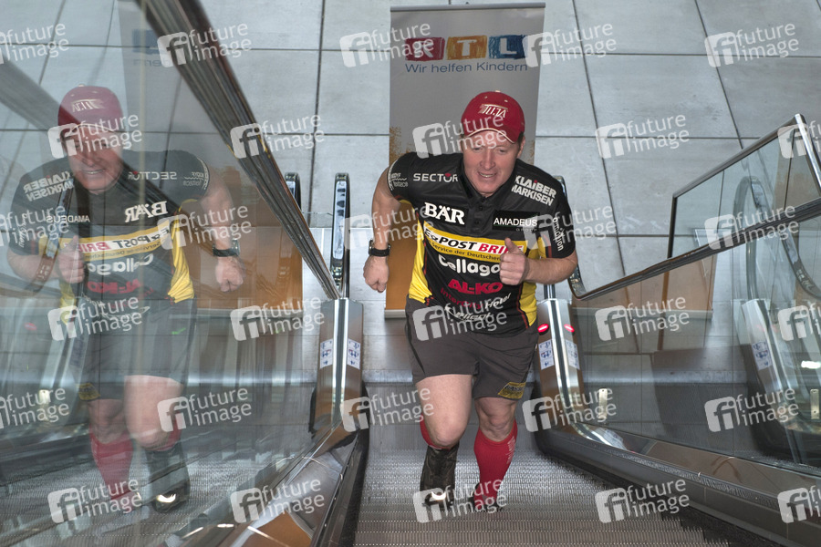 Pressetermin zum Guinness Weltrekord-Versuch. Joey Kelly will parallel zum RTL-Spendenmarathon eine herunterfahrende Rolltreppe 24 Stunden lang hochsteigen im RTL-Gebäude, Köln