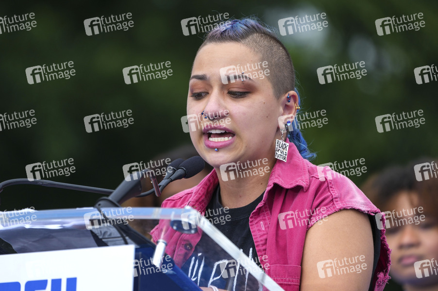 Waffenkontrollaktivistin X Gonzalez spricht auf dem March for Our Lives. Tausende Menschen demonstrieren gegen die landesweite steigende Waffengewalt und fordern den Kongress auf, Schritte zu ihrer Beendigung zu unternehmen. March for Our Lives wurde von Überlebenden der Massenschießerei 2018 an einer High School in Parkland, Florida gegründet. Washington, 11.06.2022