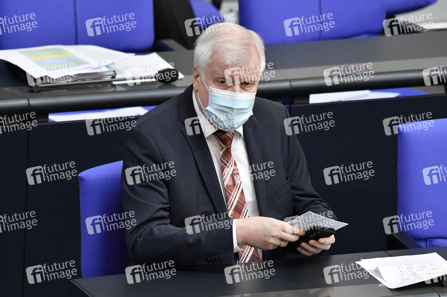 Horst Seehofer in der 225. Sitzung des Deutschen Bundestages im Reichstagsgebäude. Berlin, 23.04.2021