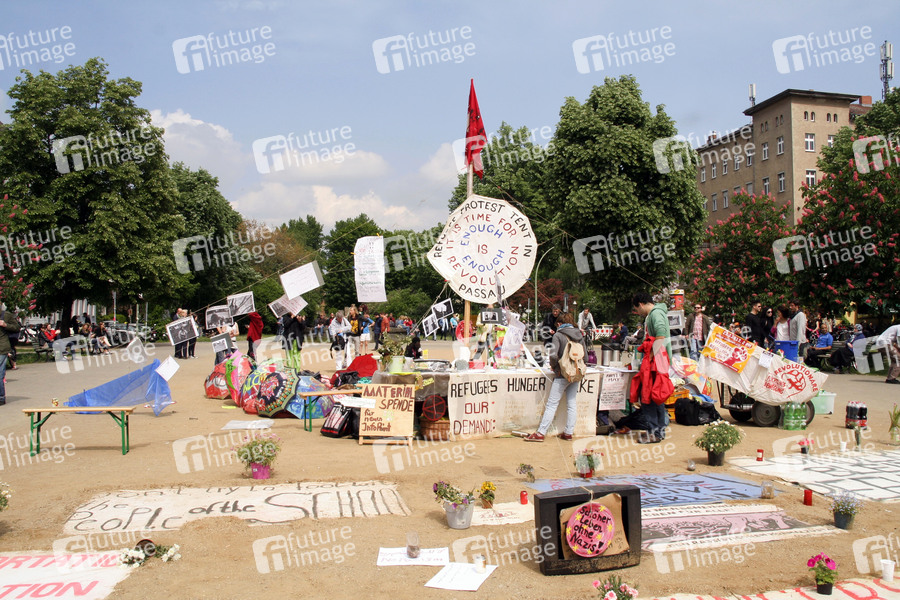 Maidemo im Flüchtlingsdorf Oranienstraße in Kreuzberg, wo Flüchtlinge hren Hungerstreik durchführen. Berlin, 01.05.2015