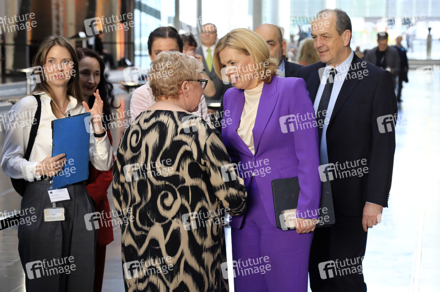 Evelyn Zupke und Julia Klöckner bei der Ausstellungseröffnung über ehemalige politische Häftlinge in der DDR unter dem Titel 'Staatssicherheitsinhaftierung / Porträt 2023 - 2024' mit Fotos von Andre Wagenzik im Paul-Löbe-Haus. Berlin, 08.04.2025