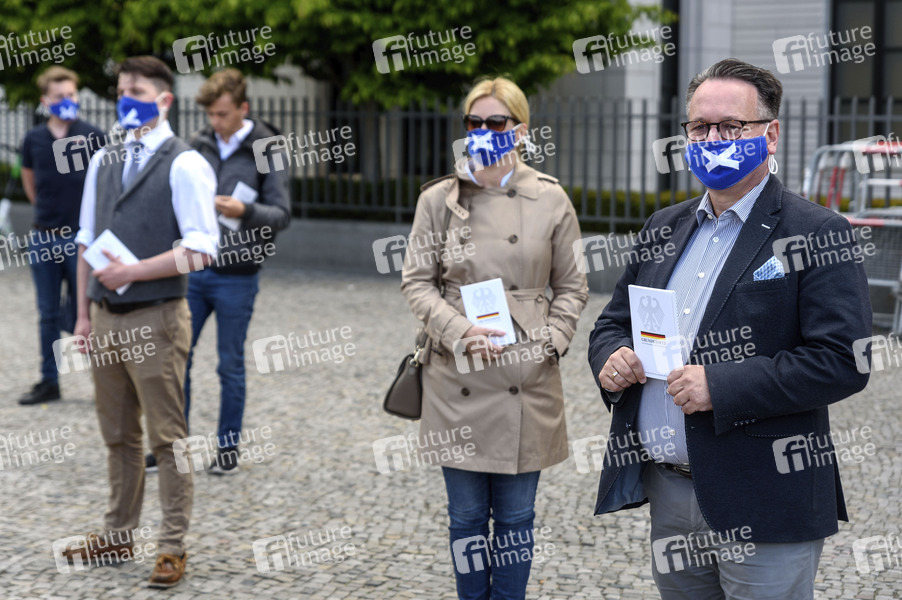 Mitglieder der Alternative für Deutschland (AfD) protestieren mit zwei Schweigekundgebungen nahe dem Brandenburger Tor gegen die Corona-Eindämmungsmaßnahmen. Berlin, 16.05.2020