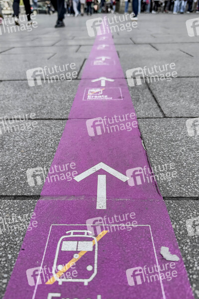 Im Rahmen von Streckenmodernisierungen oder Störungen des Eisenbahnbetriebes, richtet die Bahn einen Schienen-Ersatzverkehr mit Bussen ein. Hierdurch verlängert sich die Reisezeit oft erheblich zum Beispiel durch Verkehrsstaus auf den Straßen. Die Bushaltestellen zum Schienen-Ersatzverkehr werden in den Bahnhöfen durch auffällige Hinweisbanner und Schilder hingewiesen. (Symbolfoto, Themenfoto) Köln, 17.05.2025
