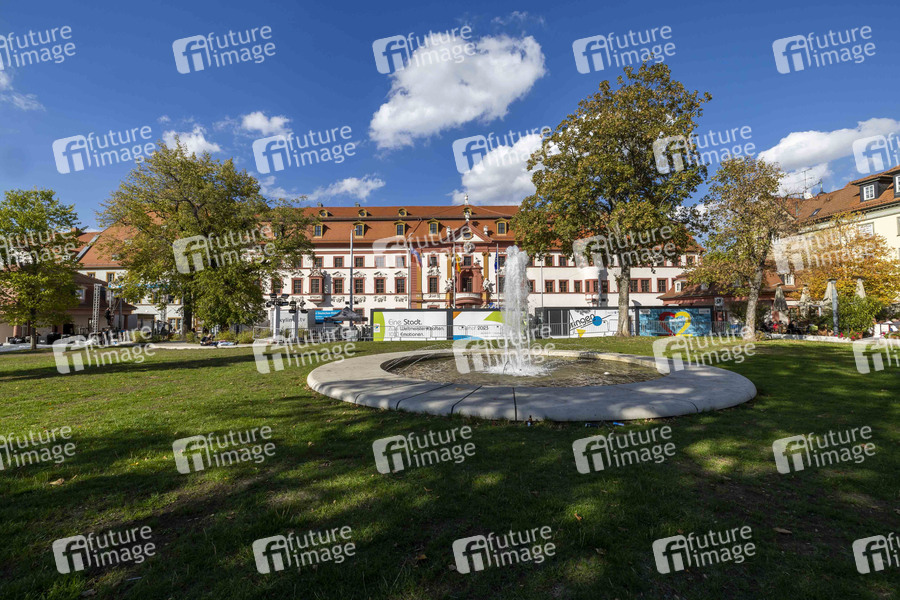 Die Staatskanzlei am Erfurter Hirschgarten während er Vorbereitungen zum Tag der Deutschen Einheit unter dem Motto 'Zusammen wachsen'. Erfurt, 30.09.2022