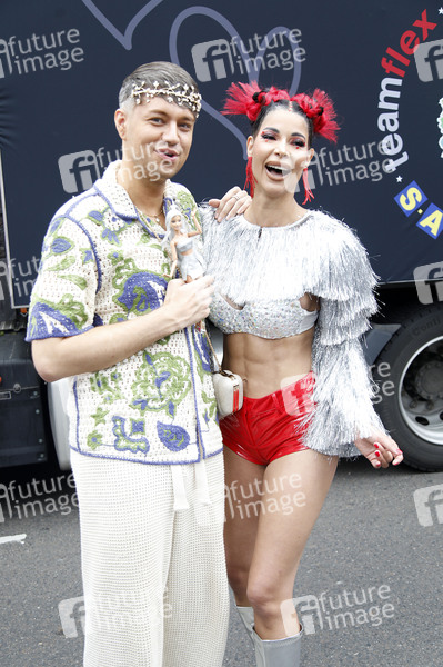 Marcell Damaschke und Micaela Schäfer bei der 47. Christopher Street Day Parade 2025 unter dem Motto 'Nie wieder still'. Berlin, 26.07.2025