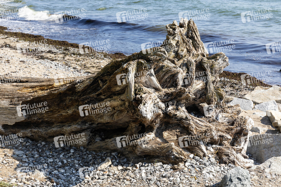 Baumwurzel am Strand - Sightseeing in Sassnitz auf der Halbinsel Jasmund im Nordosten der Insel Rügen. Sassnitz, 08.10.2024