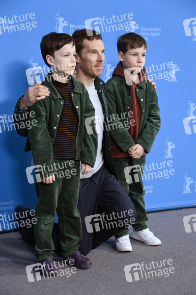 Richard Boxall, Benedict Cumberbatch und Henry Boxall beim Photocall zum Kinofilm 'The Thing with Feathers' auf der Berlinale 2025 / 75. Internationale Filmfestspiele Berlin im Hotel Grand Hyatt. Berlin, 18.02.2025