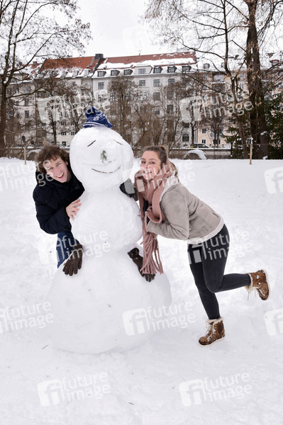 Prominenz, Celebrity, Celebrities, exklusives Fotoshooting, Photoshooting, Fototermin, Schnee, Winter, Unterhaltung, Entertainment, Schneemann, Regisseur, Kabarettist, Schauspielerin