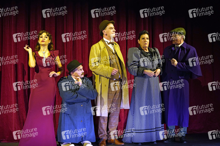 Anna Julia Antonucci, Alexis Kara, Oliver Dupont, Katy Karrenbauer und Jan Sosniok bei der Fotoprobe zum Theaterstück 'Sherlock Holmes: Der Fall Moriarty' in der Komödie am Kurfürstendamm im Ernst-Reuter-Saal. Berlin, 06.03.2025