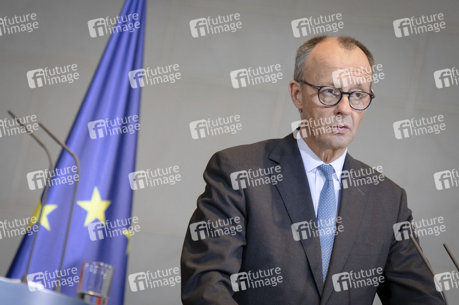 Friedrich Merz bei der Pressekonferenz nach der Unterzeichnung der bilateralen deutsch-schwedischen Innovationspartnerschaft im Bundeskanzleramt. Berlin, 19.11.2025