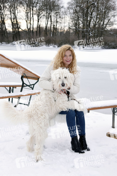 Julia Uttendorfer mit ihrem Hund Louie beim Seehaus am Kleinhesseloher See im Englischen Garten. München, 08.01.2021
