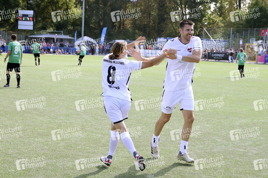 Anjorka Strechel und Fabian Boll beim Benefiz-Fußballspiel 'Kicken mit Herz' 2022 zu Gunsten des Herzzentrums des UKE im Stadium des SC Victoria. Hamburg, 04.09.2022