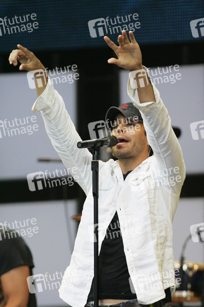 Enrique Iglesias auf dem Live Earth Konzert in der Hamburger HSH-Norbank-Arena. Die weltumspannende Konzertreihe fand auf sieben Kontinenten insgesamt 24 Stunden lang statt. Ins Leben gerufen vom ehemaligen US-Vizepräsidenten und Umweltaktivisten Al Gore und vom Musikproduzenten Kevin Wall, die damit auf die Klimaerwärmung aufmerksam machen wollten.