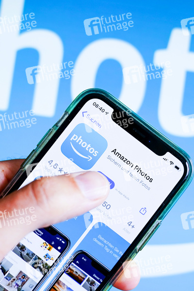 Online-Speicherdienst, Logo, Amazon Prime Mitgliedschaft, Fotoapp, Foto App, 2020, Bild, Bilderdienst, Bildsicherung, Fotosicherung, Amazon Foto, Amazon Bilder, App Store, Android System, digitales Fotoalbum, Symbolbild, Symbolfoto