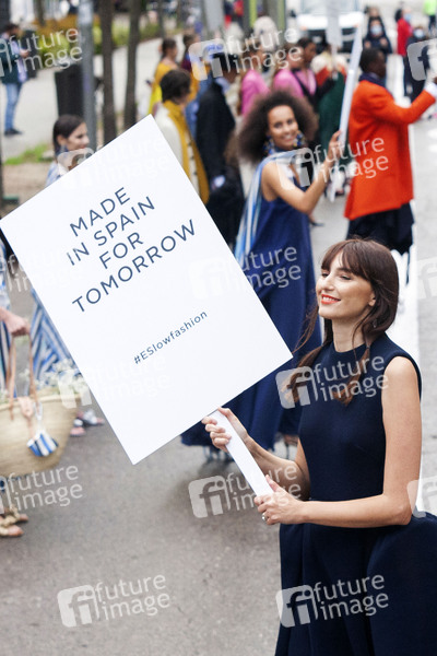 Fashion Show von 10 Modedesignern, die konzipiert wurden, um die charakteristische Mode zu feiern und ihre Rolle in der spanischen Wirtschaft und Kultur zurückzugewinnen auf dem Paseo del Prado. Madrid, 11.04.2021