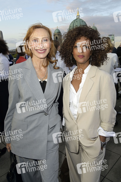 Andrea Sawatzki und Dennenesch Zoude beim Eröffnungsempfang der UFA Filmnächte 2024 auf der Dachterrasse der Bertelsmann Repräsentanz. Berlin, 21.08.2024