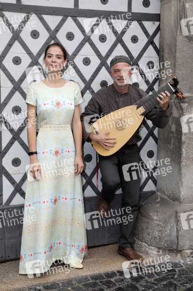 Anna Lukshina und Jakov Steiman beim Konzert im Flüsterbogen mit Gesang und Laute im Haus zum Flüsterbogen am Untermarkt. Görlitz, 22.08.2021