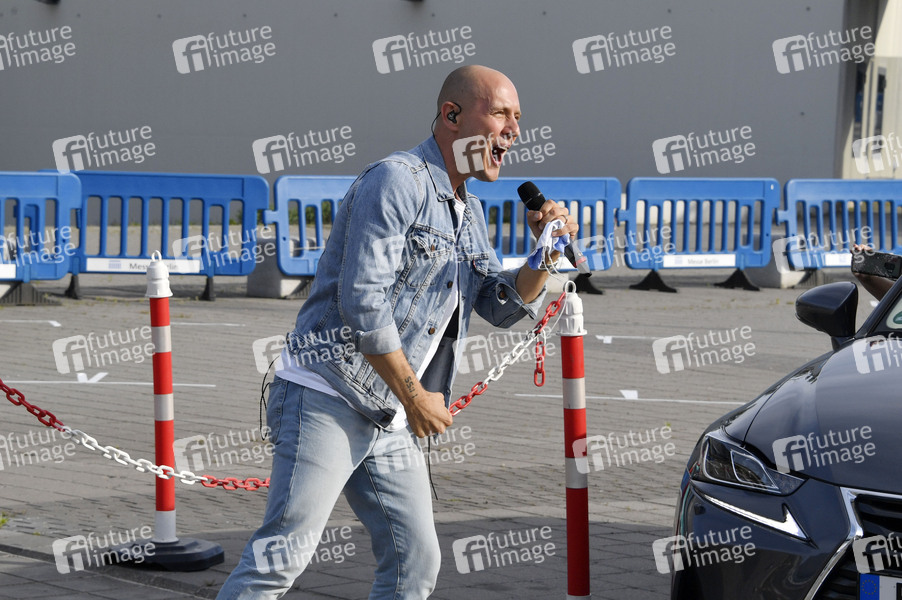 Sänger, Oli P., Schauspieler, Moderator, Oliver Petszokat, Musik, Konzert, Auftritt, Bühne, Stage, live, Unterhaltung, Entertainment, Kultur, Corona, Sars-CoV-2, Covid-19, Coronavirus, Coronakrise, Corona-Krise, Corona-Pandemie, Coronamaßnahmen, Corona-Schutz, Kontaktverbot, Mindestabstand, Social Distancing, Abstand, Abstandhalten, Abstandsregel, Auto, Autokonzertreihe, Autokonzert, Auto-Konzert