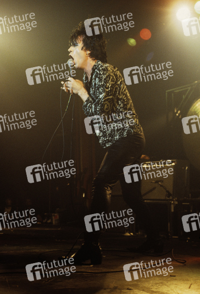 Lux Interior von The Cramps live in der Brixton Academy. London, 10.04.1984
