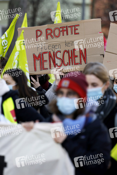 Verdi kündigt im Tarifstreit Warnstreiks an mehreren Unikliniken in NRW an. In Köln legten die Beschäftigten der Uniklinik Köln die arbeit nieder und protestierten für höhere Löhne besonders im Pflegebereich. Köln, 09.11.2021