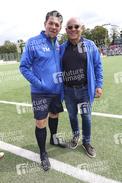 Tim Mälzer und Felix Magath beim Benefiz-Fußballspiel 'Kicken mit Herz' 2023 zu Gunsten des Herzzentrums des UKE im Stadiun Hoheluft. Hamburg, 03.09.2023
