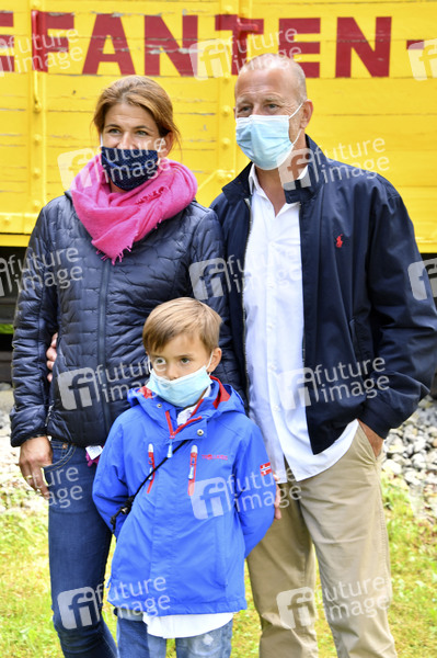 Heino Ferch mit Ehefrau Marie-Jeanette und Sohn Gustav Theo Cian beim Presserundgang auf der Circus Krone-Farm. Weßling, 29.06.2020