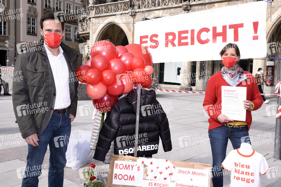 Martin Hagen und Mandy Hentschel (Romy's Room) bei der Protestaktion 'GemeinsamZukunft! Es reicht!' für Öffnungen und Lockdownende auf dem Marienplatz. München, 07.03.2021